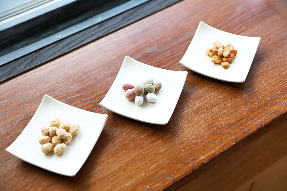 今年の1月から販売を始めたこちらの豆菓子は美味しいと言ってくださるお客様が多く、たいへんご好評いただいています。まだ食べていないという方はぜひこの機会にお召し上がりください。
