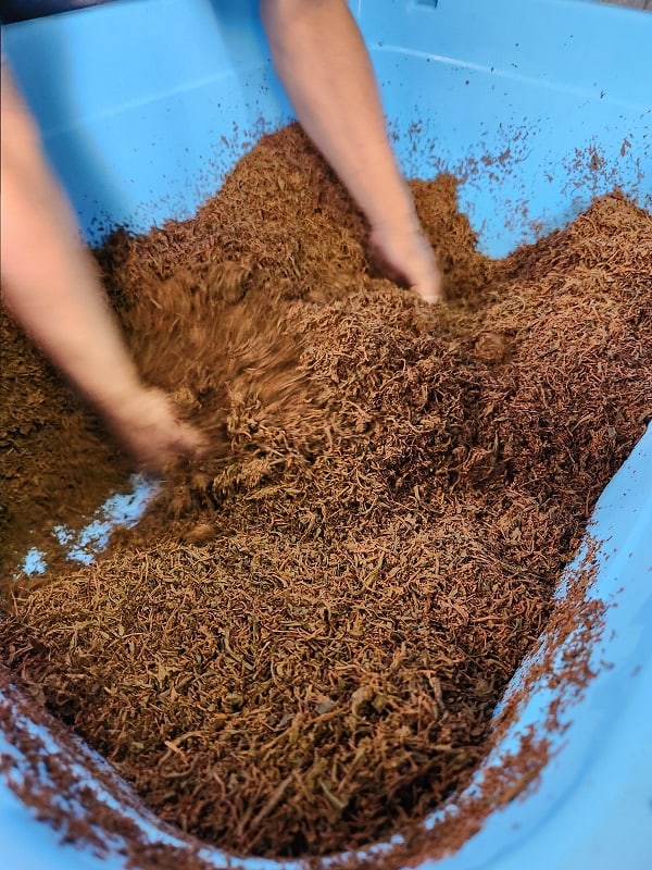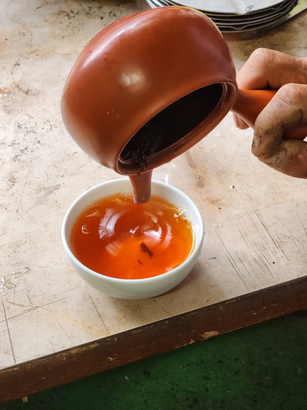次は70分ほど発酵作業。緑色だった茶葉が赤銅色に変化しました。