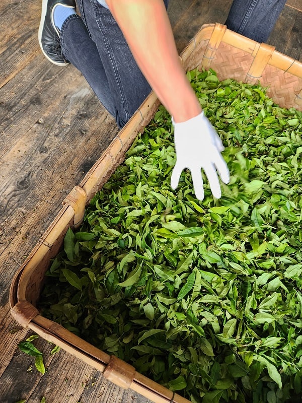 摘み取った茶葉は陰干しをし、揉めるように生葉に含まれる水分を取り除いていきます。