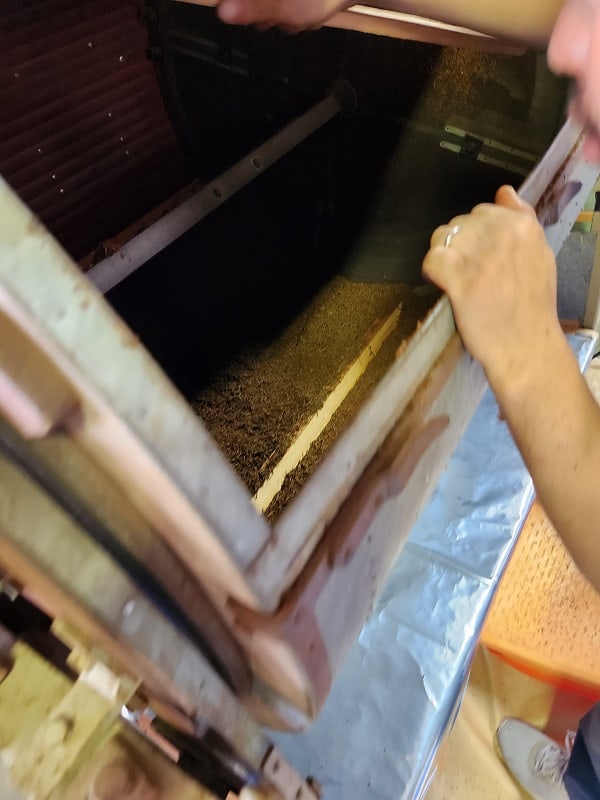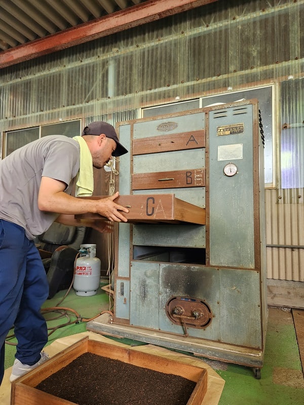 それが終わると、揉捻機という機械で揉み茶葉に傷をつけて酸化発酵を促します。